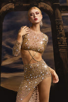 Langston Split Rhinestone Maxi Dress-Diamond Blaze Gown