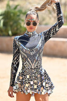 Make yourself the focus of attention at any party, nightclub or music festival! This Lia Rhinestone Sequin Mini Dress Black cleverly combines high-stretch fabric with three dimensional cutting technology, which not only brings the ultimate visual luxury, but also ensures comfort and freedom of movement. The exquisite sequin mirror design can reflect the dazzling light under the light, perfectly highlighting your fashion attitude.