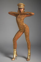 Maisie Rhinestone Gloves Jumpsuit Gold-All In One Glam