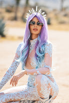 Showing unparalleled glamour and elegance, the Makenzie Long Sleeve Rhinestone Jumpsuit White is the perfect outfit for stage performances, music festivals and lavish parties. Decorated with delicate rhinestones, the entire jumpsuit shines brightly, making you the center of attention in any lighting. The white design with long sleeves embodies classic elegance while adding a modern touch, making you look stunning on stage or at an event.