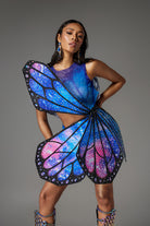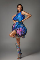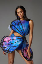 Unleash your inner goddess with this stunning Marceline Butterfly Rhinestone Embellished Dress. Blending vibrant blue, purple and pink, this dress is embellished with rhinestones that catch the light from every angle. The asymmetrical design is reminiscent of delicate butterfly wings, creating a bold and unique silhouette that is sure to turn heads. This eye-catching dress is perfect for any fancy occasion. Be sure to turn heads and elevate your style with this stunning, eye-catching design that will make you stand out from the crowd.