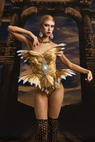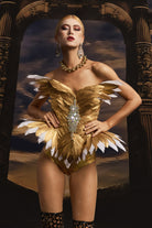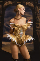 The Mccoy Strapless Feather Top is a dreamy, dramatic piece made for the bold and beautiful woman. This off-the-shoulder design features luxurious feather trims that dance with every move, creating an ethereal, theatrical feel. The clean neckline and cropped cut flatter the shoulders and bust, making it a favorite among dancers, drag queens, and cabaret idols. Whether worn with sequined pants, dramatic skirts, or metallic leggings, this feather top will add a feminine, agile, and memorable touch to your next gig, performance, or magazine shoot.