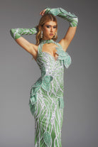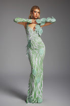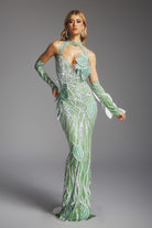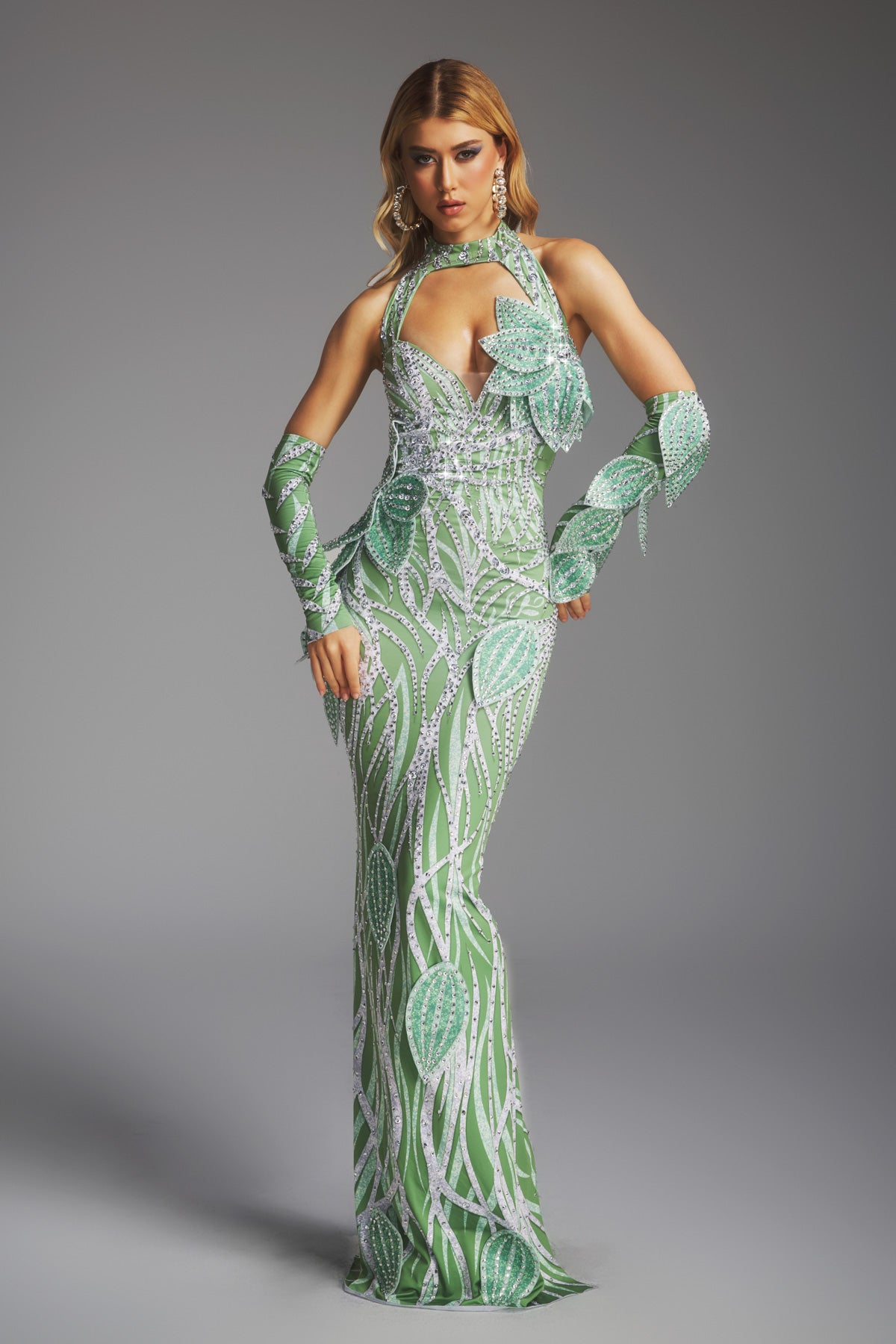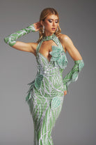 Meadow Leaf Rhinestone Embellished Maxi Dress-Perfect for Performances, Pageants, and Drag Shows