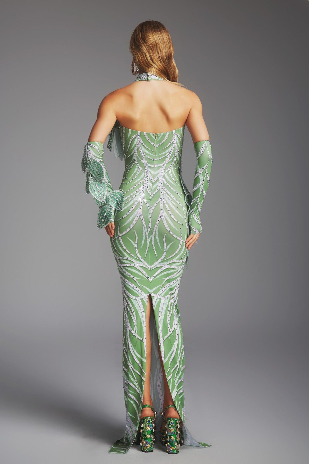 Meadow Leaf Rhinestone Embellished Maxi Dress