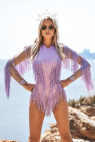 Monroe Rhinestone Fringe Bodysuit Set Purple