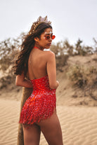 Designed for performers and party queens who pursue the ultimate eye-catching, Murphy Rhiestone Fringe Bodysuit Red uses flaming red as the base color, and combines dynamic tassels and exquisite rhinestones to create an explosive design, turning into a visual bomb on stage, nightclub, concert or drag show, so that every turn you make will set off a wave of enthusiasm
