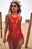 Murphy Rhiestone Fringe Bodysuit Red-Eye-catching costumes for stage and party
