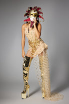 This high fashion dress is made for the bold fashionista who knows how to make a statement. With its bold silhouette, exquisite details, and premium fabrics, it is a must-have for anyone who wants to stand out.