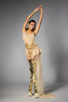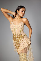 - Gold Embellished Details: Rich gold sequins and intricate embellishments add luxury and elegance.
