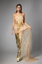 This stunning piece, the Nevaeh Halter Neck Sequin Dress, features delicate sequin embellishments that sparkle with every movement. Designed to steal the spotlight, this dress includes delicate gold detailing and luxurious sequins, making it a great choice for an upscale event, gala, or VIP night out.