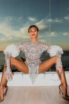 Noelle Rhinestone Fringe Bodysuit-Command the Stage in Dazzling Sparkle