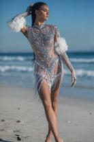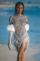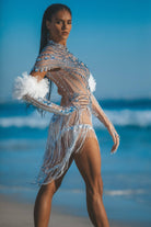 Unleash your inner diva with the Noelle Rhinestone Fringe Bodysuit– a show-stopping piece crafted for performers, entertainers, and fearless fashion icons. Designed to mesmerize under spotlights, this body-hugging bodysuit features of hand-set rhinestones and shimmering diamond-like accents, creating a celestial glow that ensures all eyes stay locked on you. Perfect for concerts, burlesque shows, photo shoots, or any event where boldness meets brilliance.