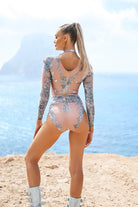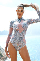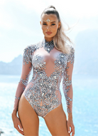 Oaklyn Long Sleeve Print Rhinestone Bodysuit-Stunning Performance Outfit