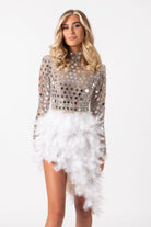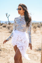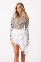 Olivia Feather Sequin Dress-Sparkling Embellished Top with Chic Feathers