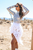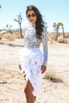 Make a statement in the Olivia Feather Sequin Dress. Designed for bold fashionistas, this stunning piece features a sparkling embellished top adorned with intricate beads, catching the light at every angle. The lower part of the dress is finished with soft, elegant feathers that add movement and texture, giving you a flawless, show-stopping look. Perfect for red-carpet events, glamorous parties, or an unforgettable night out, this dress exudes confidence and allure. Pair it with minimalist accessories to let the dress truly shine.