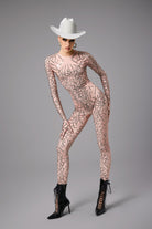 The Phillip Long Sleeve Rhinestone Jumpsuit embodies bold sophistication and stage-ready brilliance. Designed with a sleek silhouette and intricate rhinestone embellishments, it reflects light with every movement, creating a striking visual rhythm. The long sleeves and contoured fit emphasize strength and elegance, making it ideal for performances, galas, or avant-garde fashion moments. Confident, refined, and unforgettable—this jumpsuit defines modern glamour.