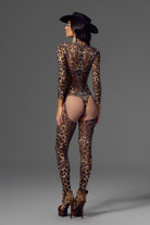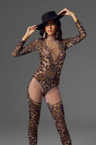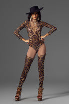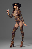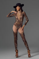 Inspired by Beyoncé's fearlessness and charm, this Quinn Leopard Printed Rhinestone Jumpsuit is a perfect blend of sexiness, luxury and wildness. The jumpsuit features a delicate leopard print pattern and rhinestone decoration, showing luxury and sparkle, adding a touch of star-like brilliance. The tight design perfectly outlines the curves of your body, allowing you to confidently show your unique charm. Whether it is a party, stage performance or special occasion, this jumpsuit will make you the focus of the whole scene, showing your fashion and unique personality.