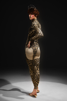 Inspired by Beyoncé's fearlessness and charm, this Quinn Leopard Printed Rhinestone Jumpsuit is a perfect blend of sexiness, luxury and wildness. The jumpsuit features a delicate leopard print pattern and rhinestone decoration, showing luxury and sparkle, adding a touch of star-like brilliance. The tight design perfectly outlines the curves of your body, allowing you to confidently show your unique charm. Whether it is a party, stage performance or special occasion, this jumpsuit will make you the focus of the whole scene, showing your fashion and unique personality.