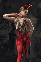 Reid Sleeveless Fringe Rhinestone Bodysuit-Glamorous Stage Spark