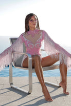 Reyna Fringe Rhinestone Bodysuit Pink