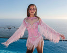 Reyna Fringe Rhinestone Bodysuit Pink-Luxe Dancewear for Stage Dominance