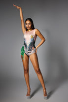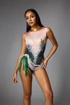 Rose Sleeveless Rhinestone Embellished Bodysuit-Sparkling Sleeveless Multicolor Rhinestone Bodysuit