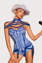 Sadie Off Shoulder Crystal Bodysuit Blue-Suitable For Stage Performances And Fancy Parties