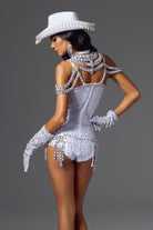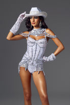 Sadie Off Shoulder Crystal Embellished Bodysuit-Suitable For Stage Performances And Fancy Parties