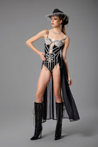 • Three-Piece Design: Includes bodysuit, cape, and necklace for a complete statement look.