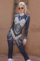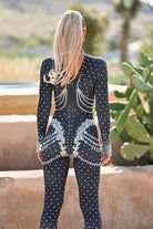 The Sarai Rhinestone Embellished Jumpsuit Black is a perfect blend of luxury and sexiness, a must-have for any stylish woman's wardrobe. Made of exquisite black stretch fabric and decorated with sparkling rhinestones, it brings you an unparalleled sense of nobility. Whether it's a dinner party, a stage performance or a special occasion, this jumpsuit will make you the focus of the audience.