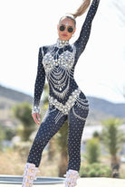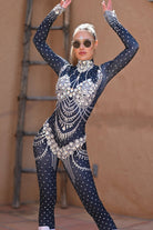 Brilliant rhinestone inlay design: Each hand-glued rhinestone is carefully inlaid on the surface of the jumpsuit to achieve the maximum sparkle/dazzle effect, which is extremely luxurious. Whether on stage or under the lights, it will show a unique luster.