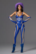 The combination of blue and nude creates a sophisticated yet playful colour contrast, while the rhinestones add sparkle to every move. Whether you're performing on stage or attending a grand event, this jumpsuit will make you look confident and stylish. Designed for ultimate comfort and flexibility, ensuring you can move with ease and still look stunning.