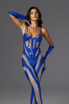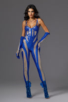 Scarlett Spaghetti Rhinestone Jumpsuit In Blue-Detailed Spaghetti Strap Jumpsuit Perfect for Stage Performances