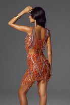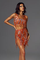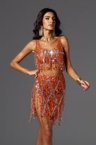 Sofia Fringe Backless Skirt Set Orange-Bold & Glamorous Performance Skirt Set Perfect for Stage Shows