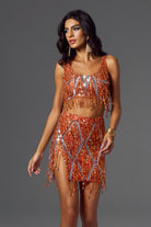 Sofia Fringe Backless Skirt Set Orange