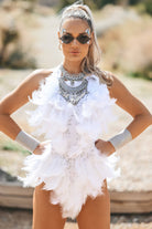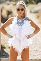 Thalia Feather Rhinestone Bodysuit White-The perfect bodysuit for parties
