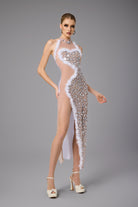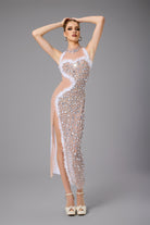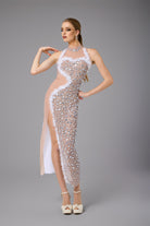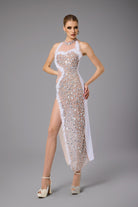 Trevor Halter Neck Crystal Split Dress-Refined Seduction in Radiant Silhouette