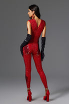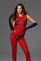 Violet Sleeveless Rhinestone Jumpsuit In Red-Perfect for Stage Shows, Beyoncé Inspired