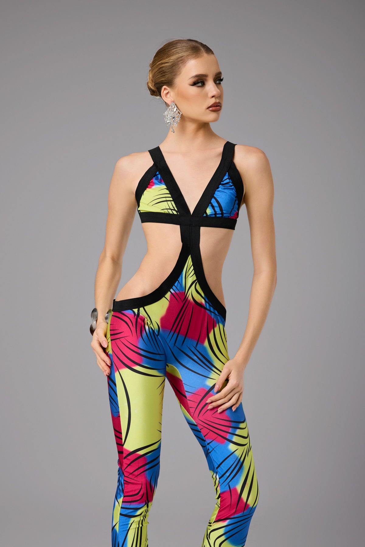 Asher V Neck Cutout Printed Jumpsuit