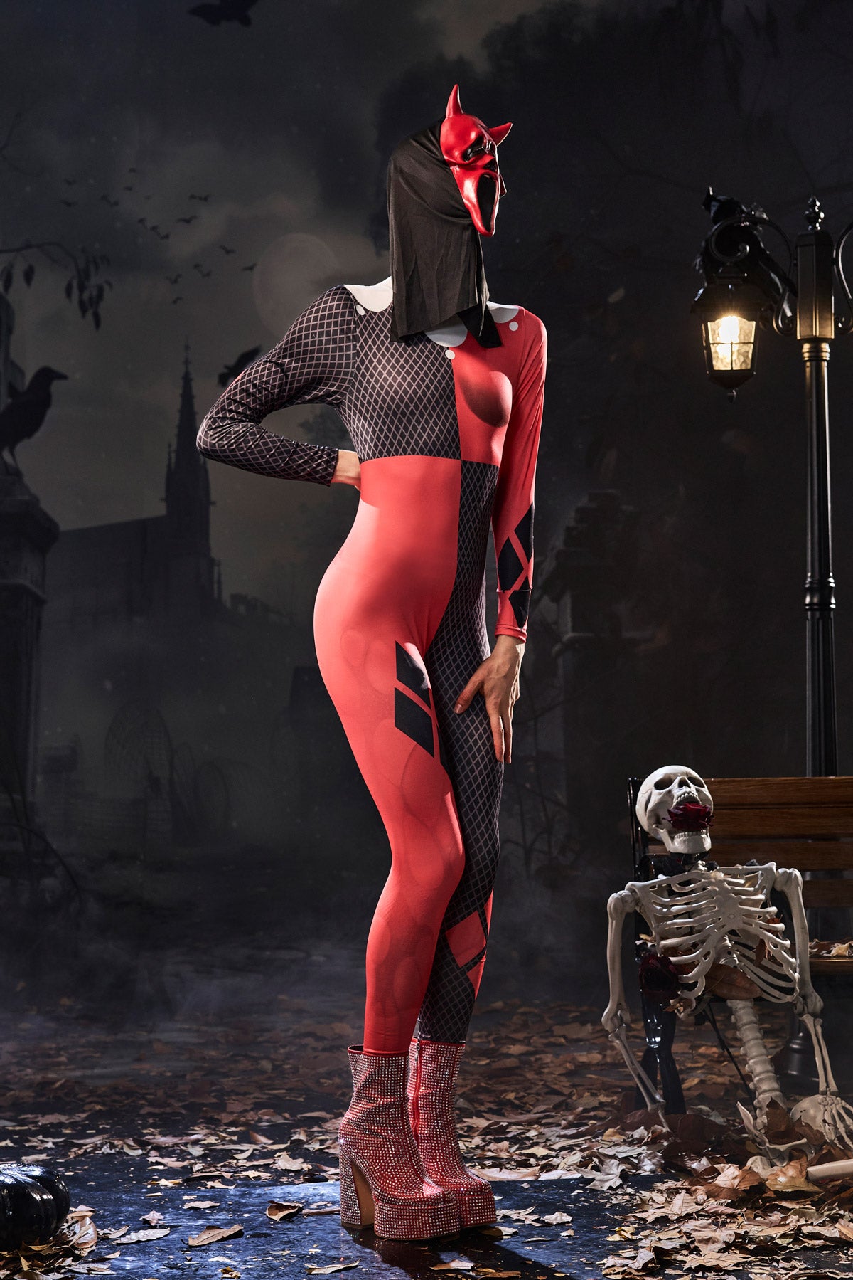 Mathew Long Sleeve Rhinestone Skeleton Jumpsuit