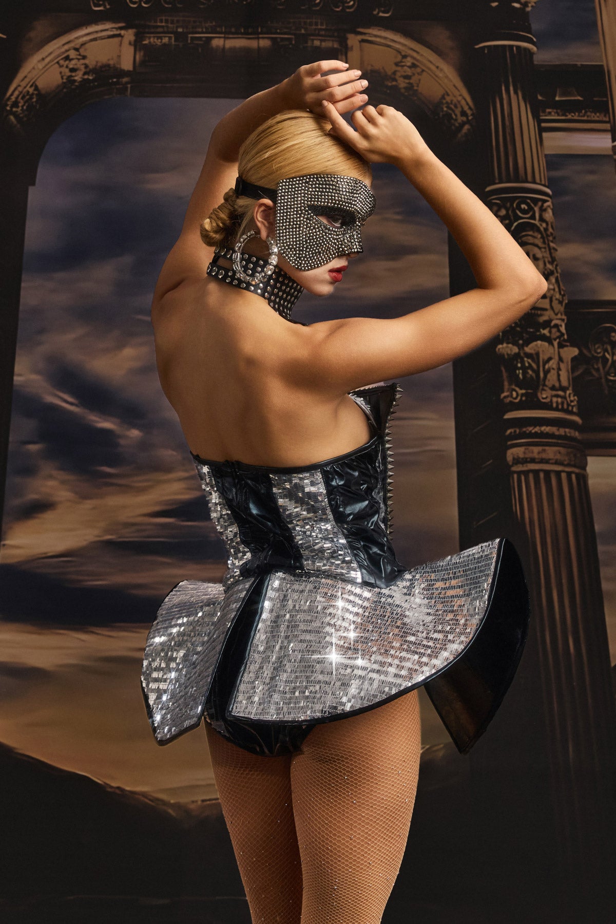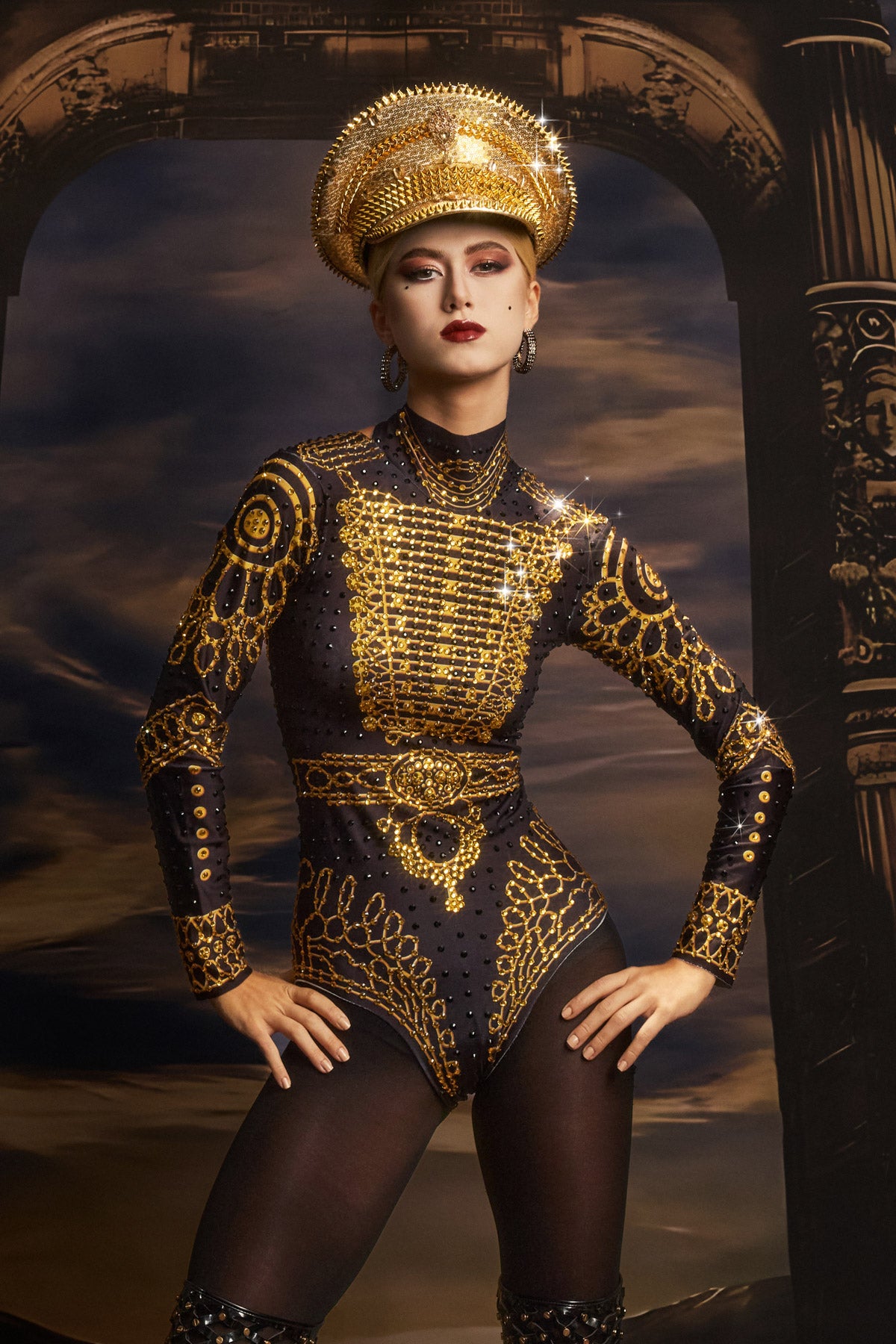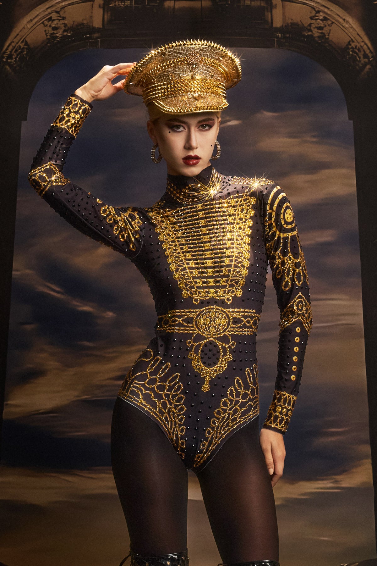 Violette Long Sleeve Printed Rhinestone Bodysuit