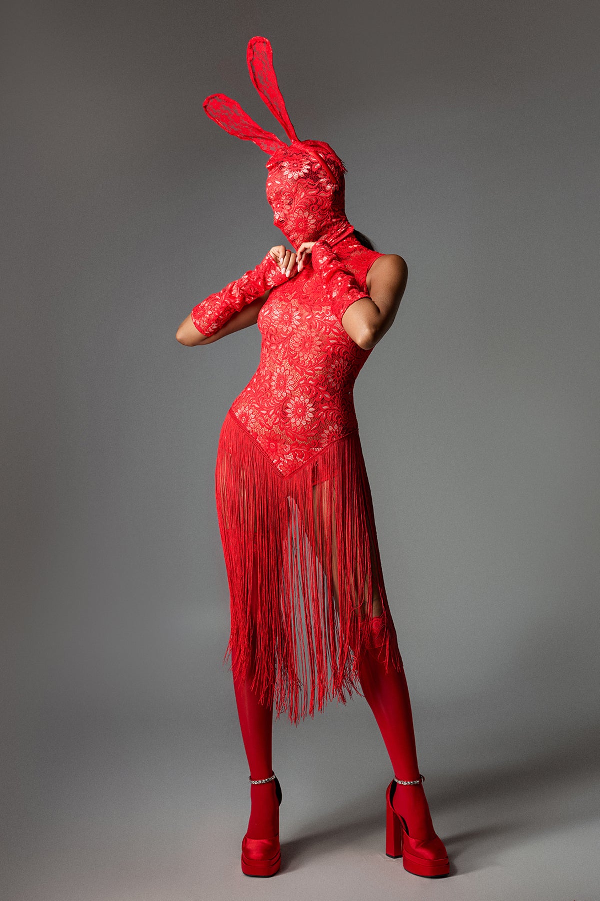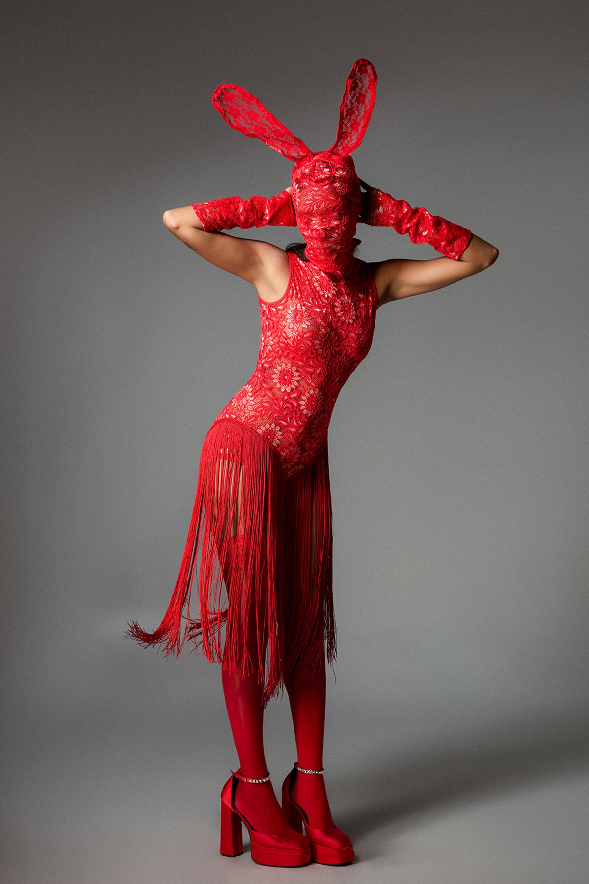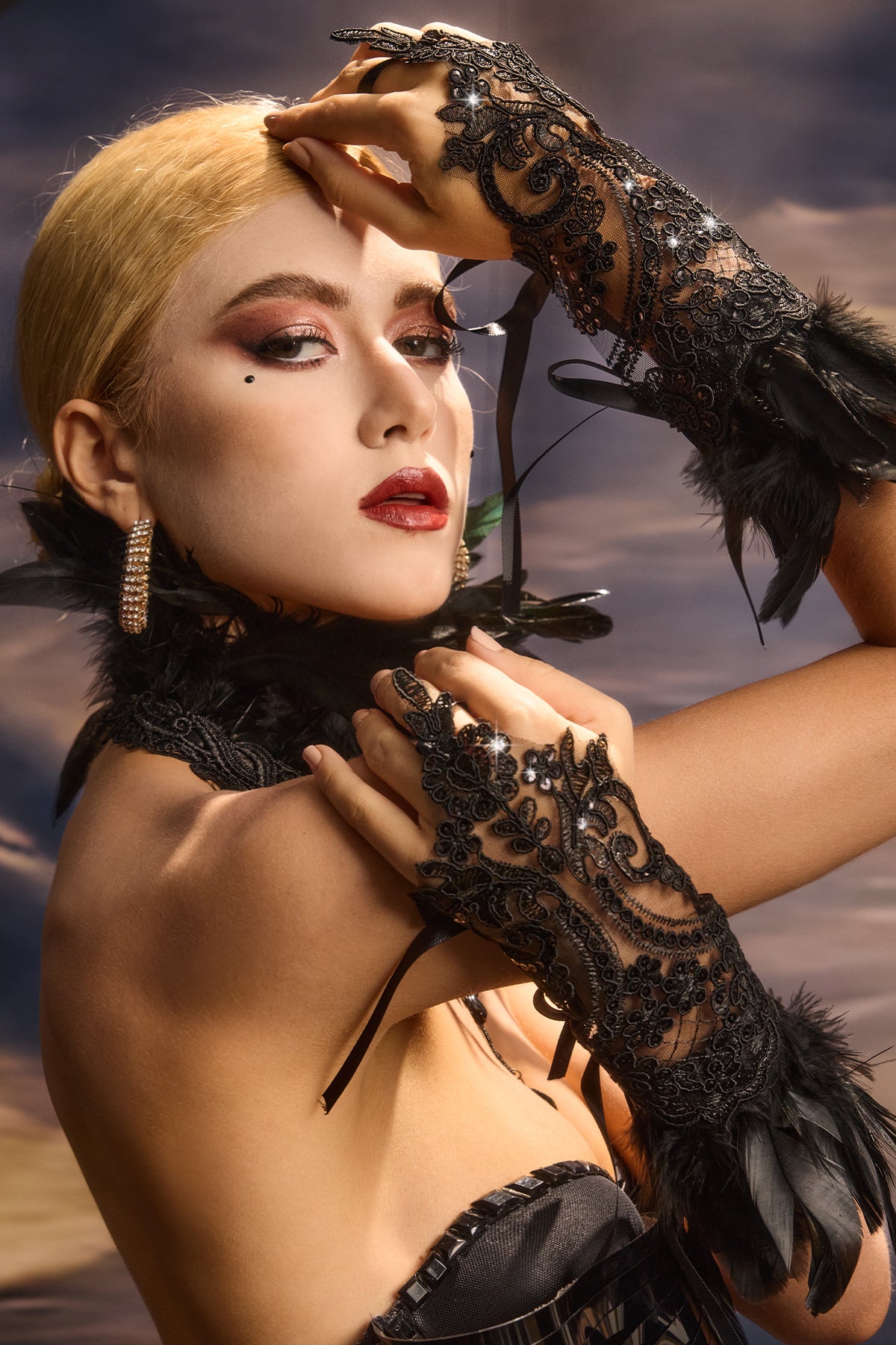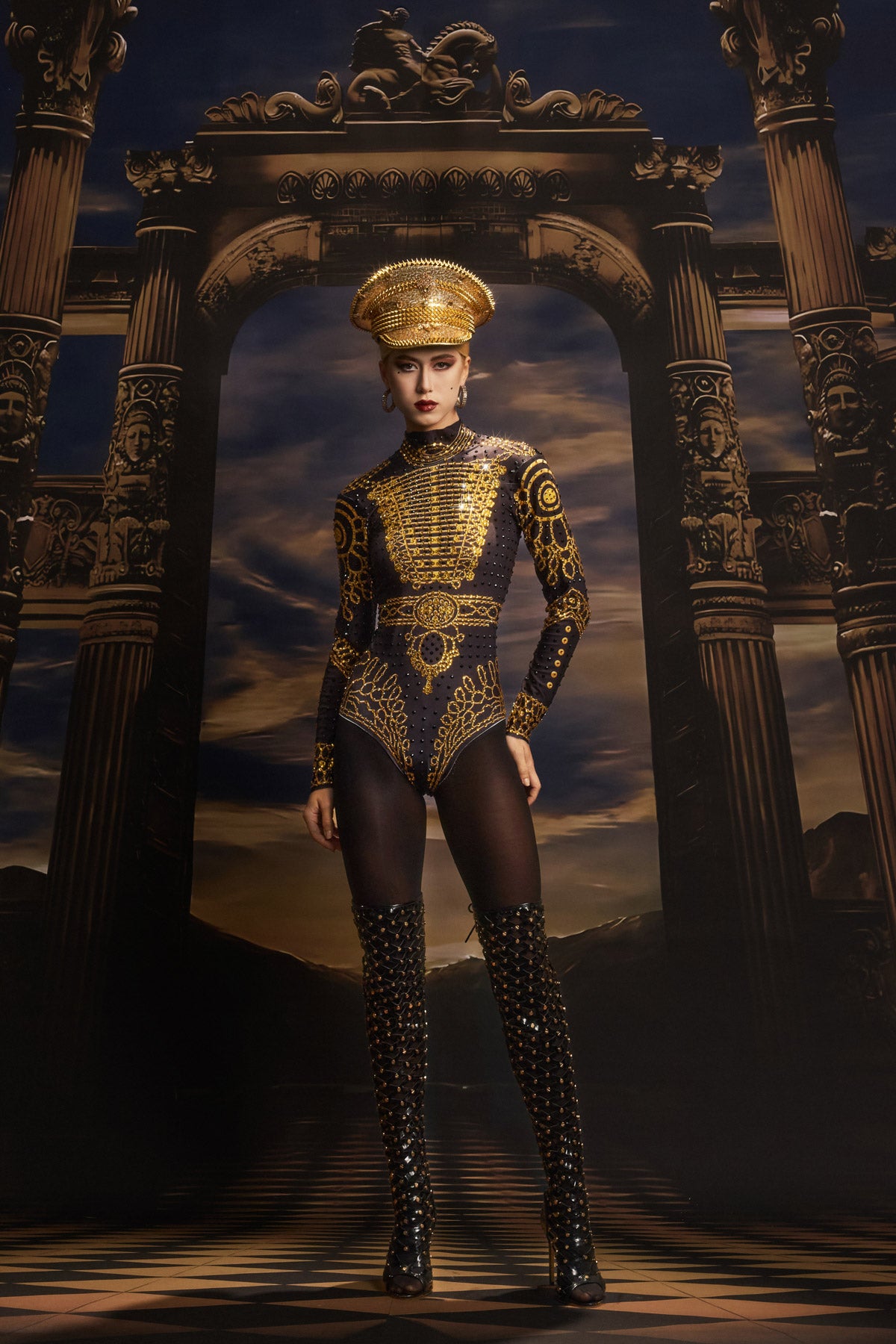 Violette Long Sleeve Printed Rhinestone Bodysuit