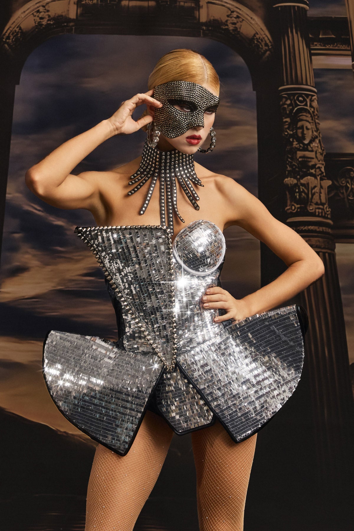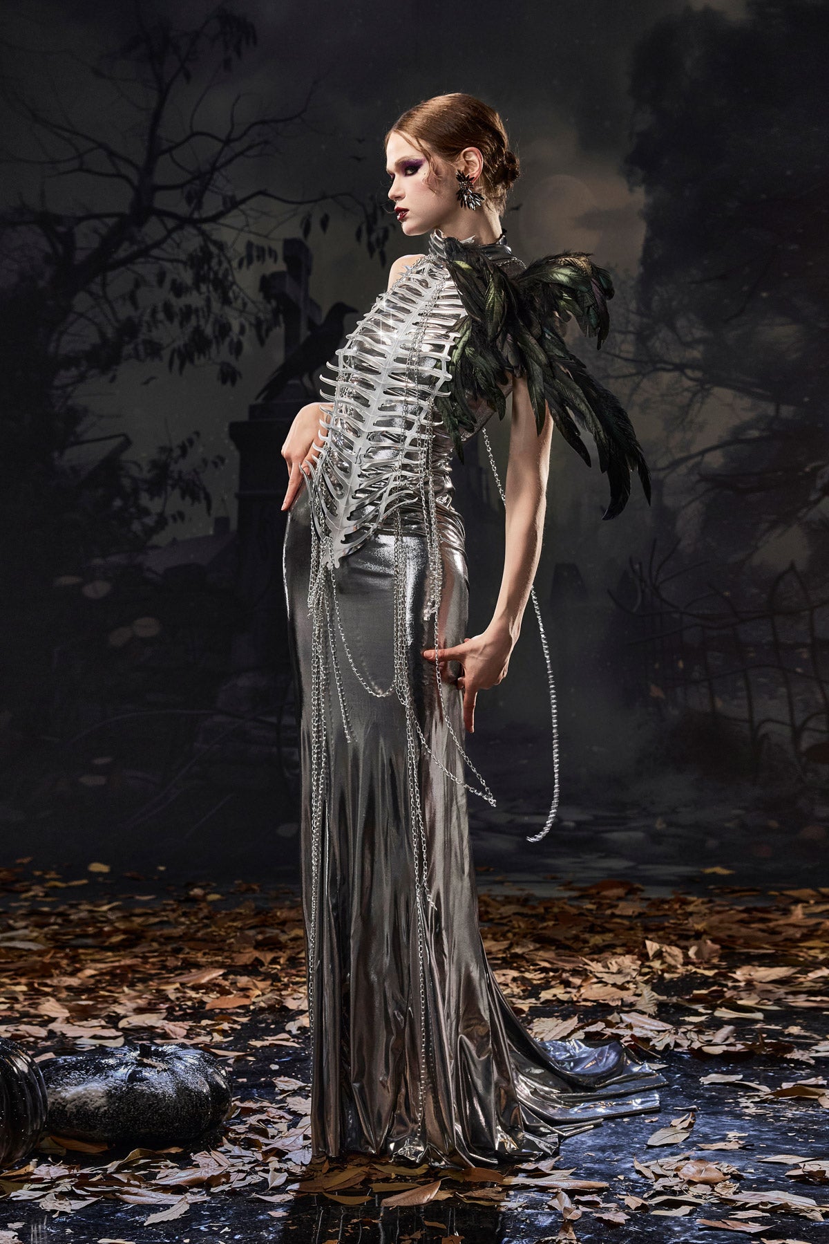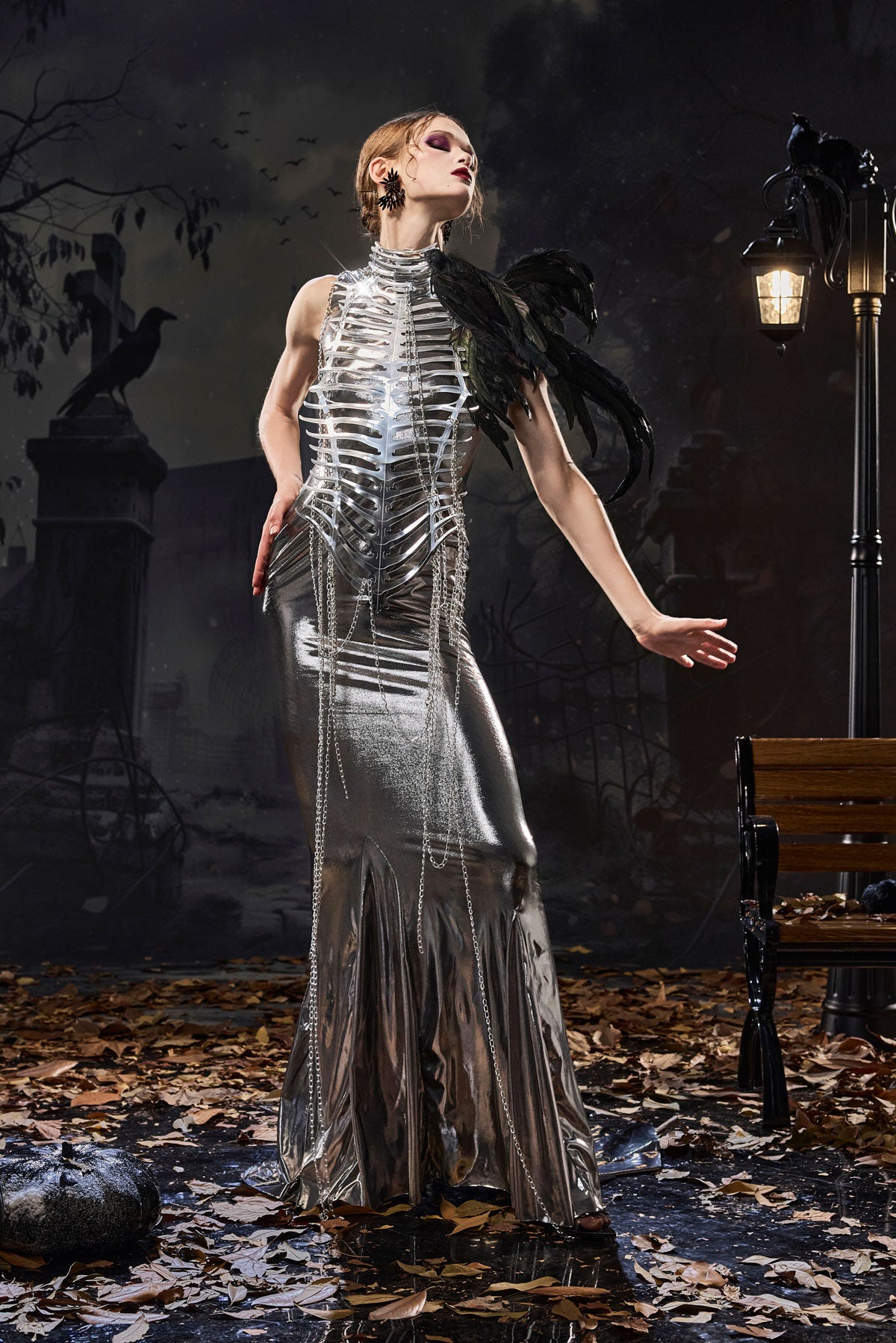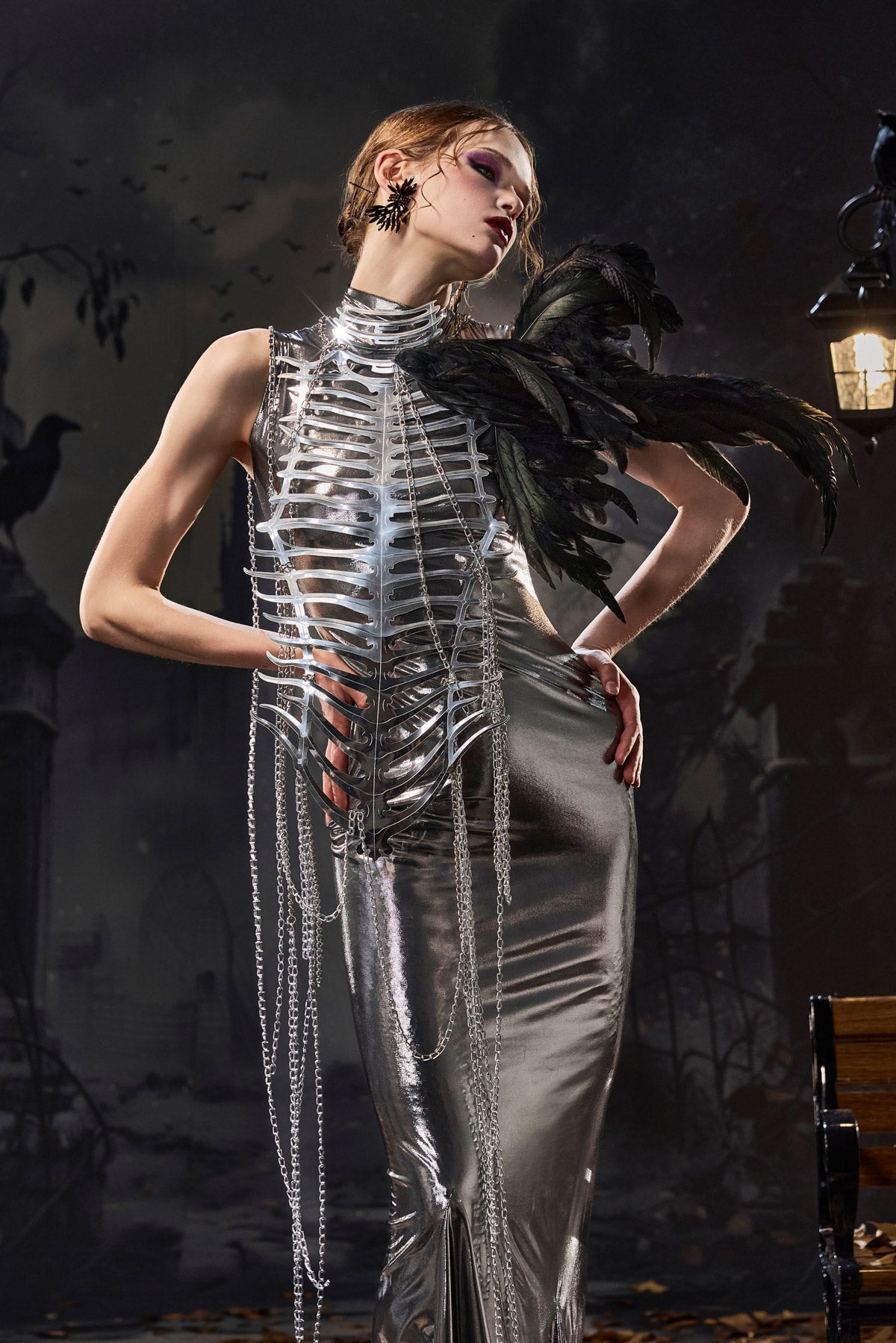 Xiomara One Shoulder Mirror Jumpsuit Silver