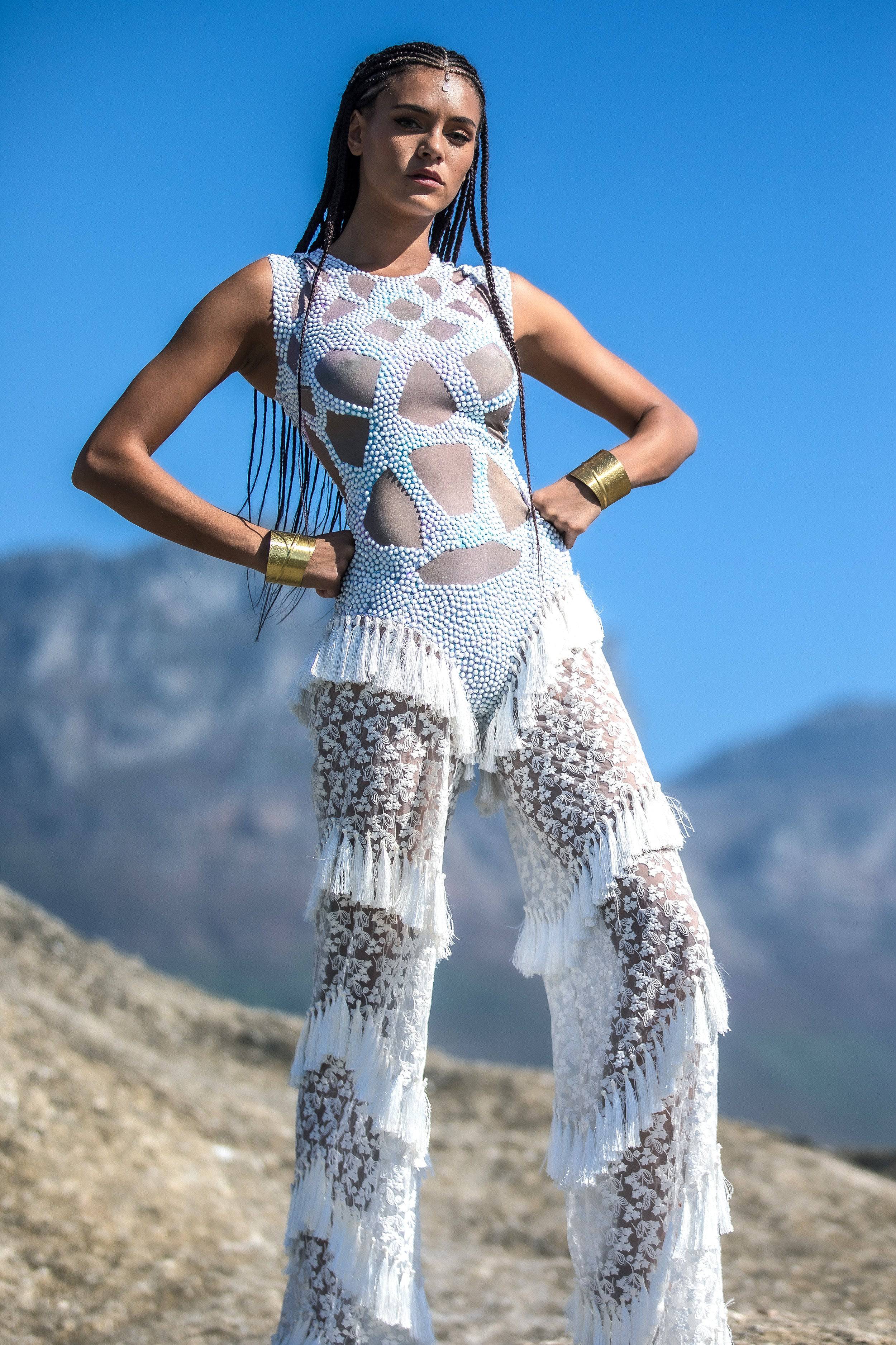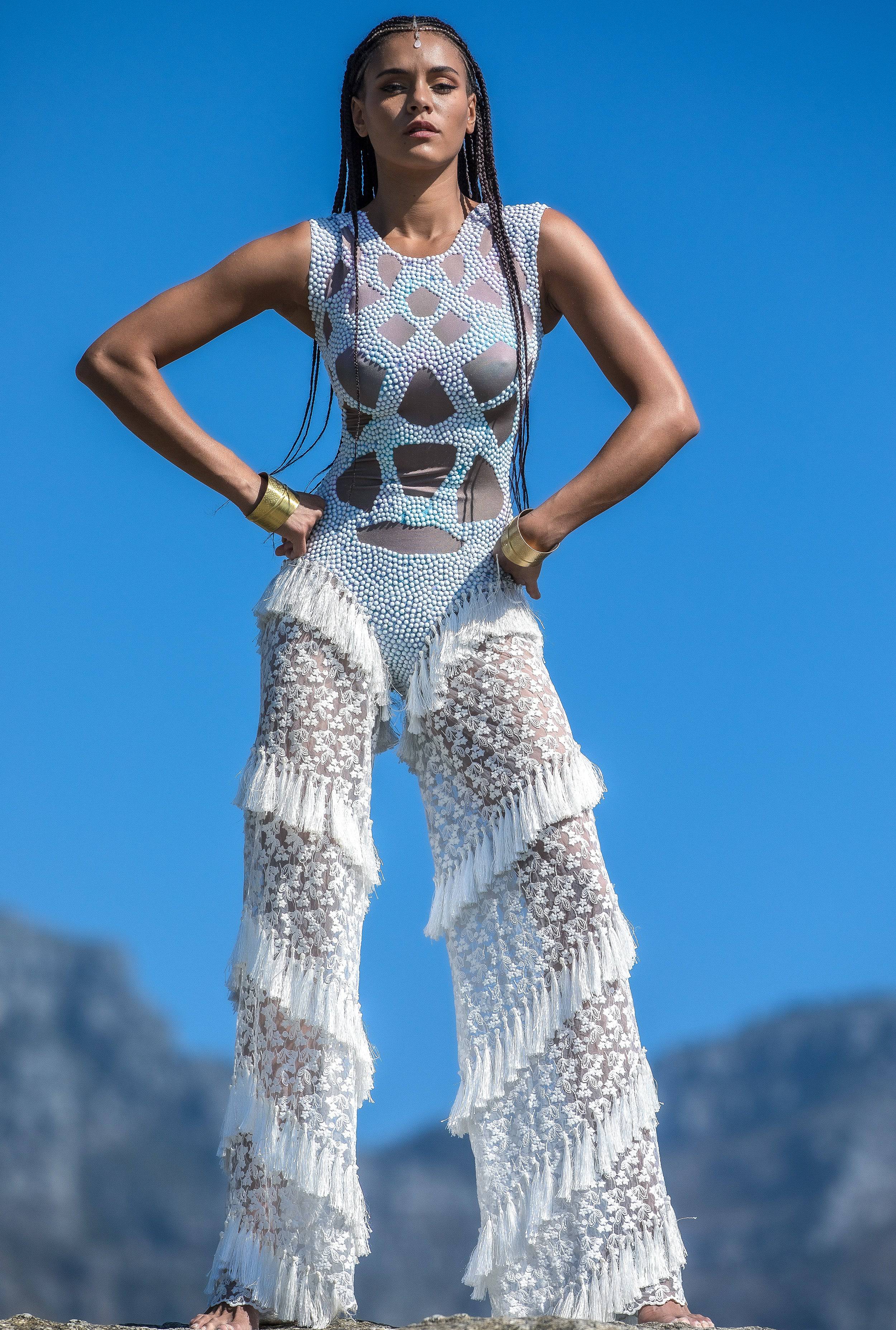 Avianna Sleeveless Pearl Fringe Jumpsuit