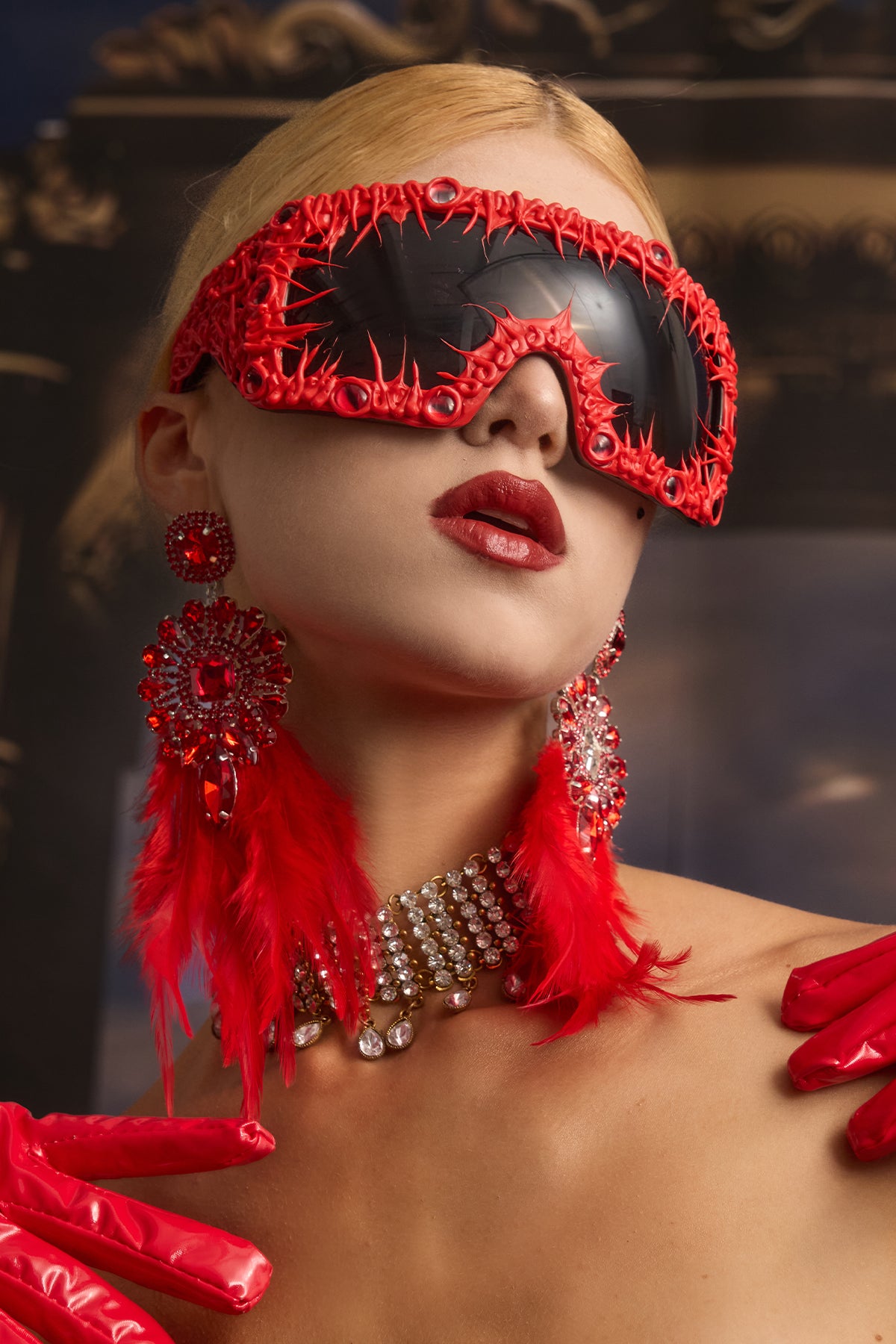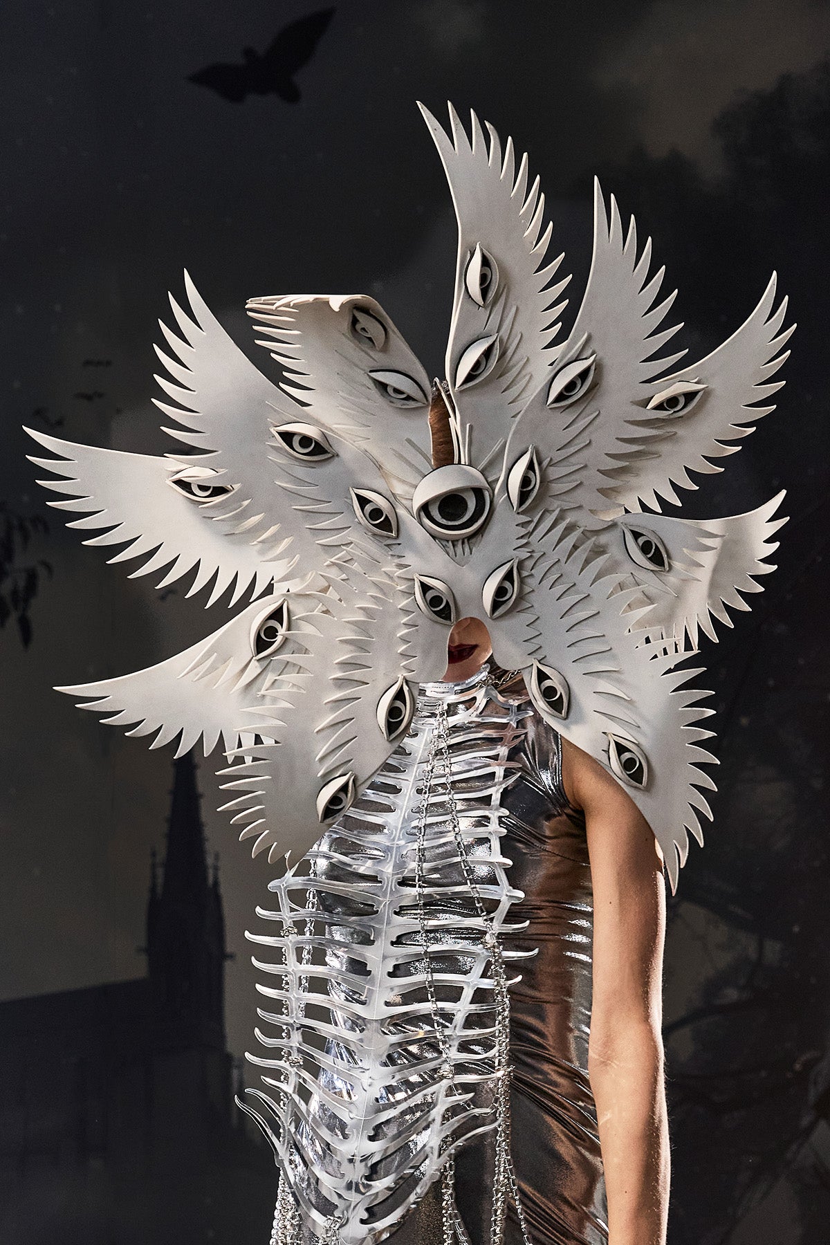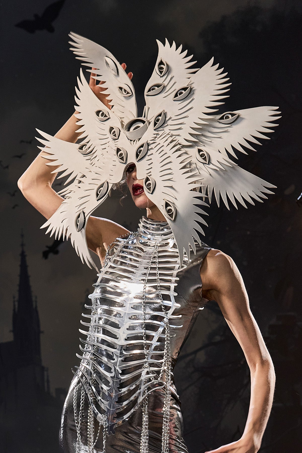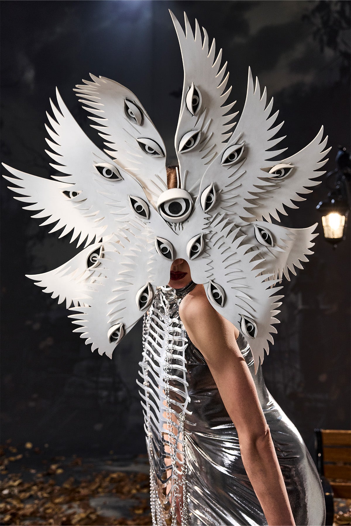 Magdalena Mesh Feather Rhinestone Jumpsuit White