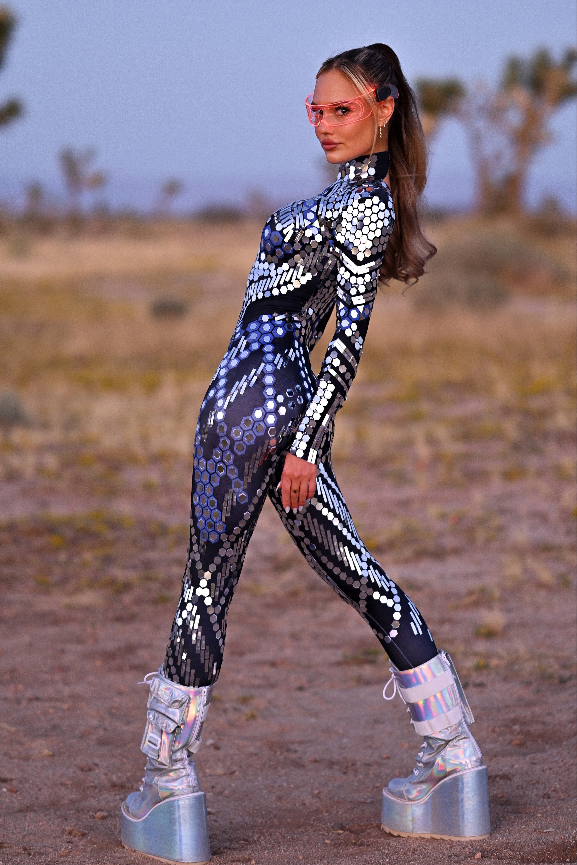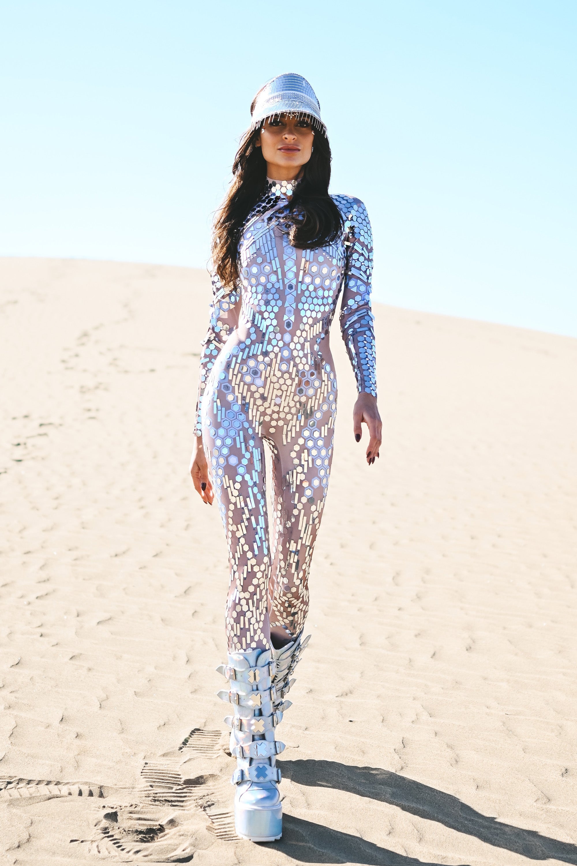 Adriana Long Sleeve Mirror Jumpsuit Gold