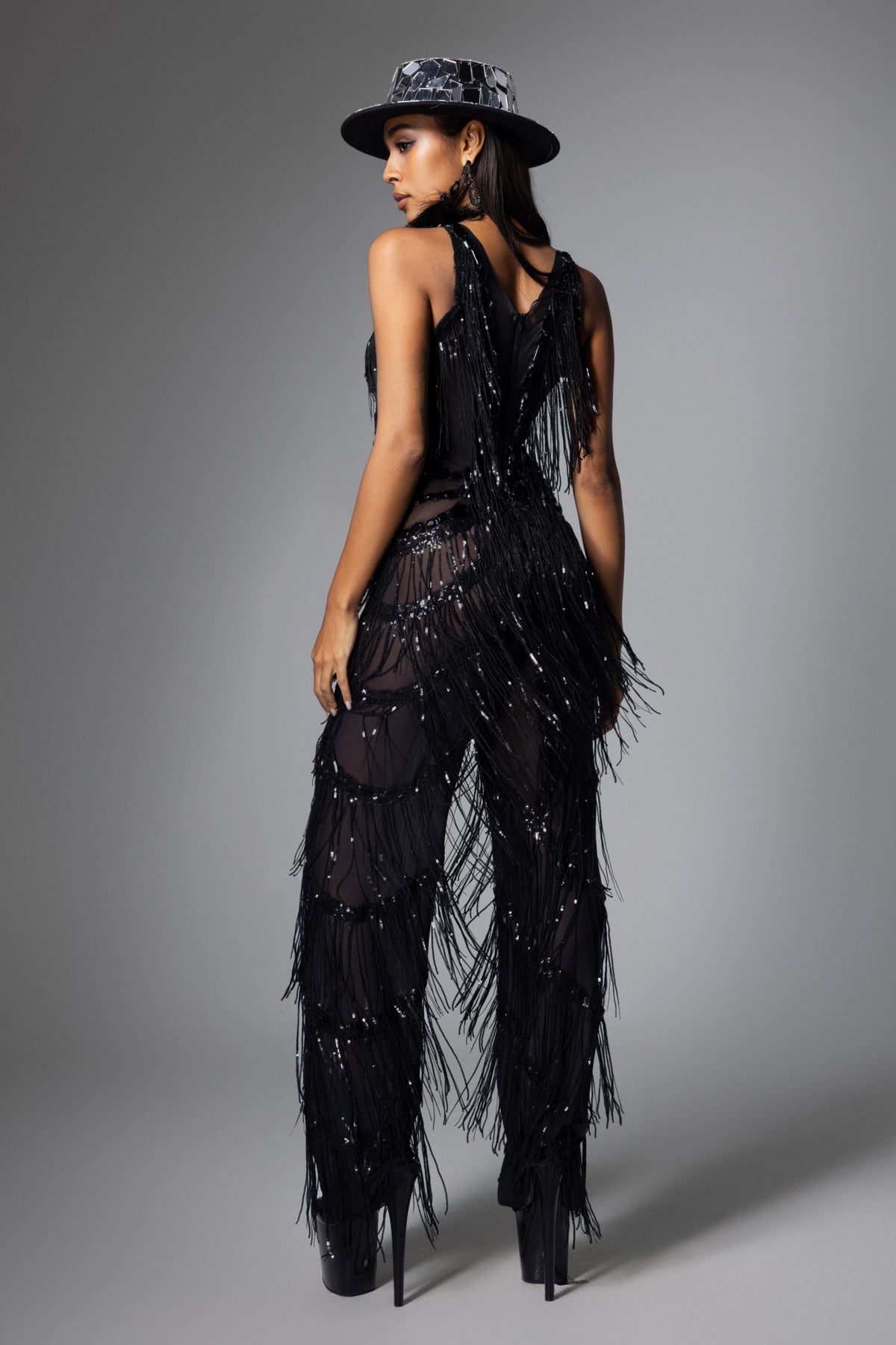 Sage V Neck Fringe Rhinestone Jumpsuit