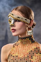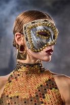 The Kash Rivet Half Mask is a bold accessory designed for performers, parties, and themed events. Its metal rivet details and structured half-face design add a rebellious, futuristic touch to any look. Lightweight and durable, this mask blends industrial aesthetics with fashion-forward style, making it the perfect finishing touch for stage performances, festivals, or cosplay.