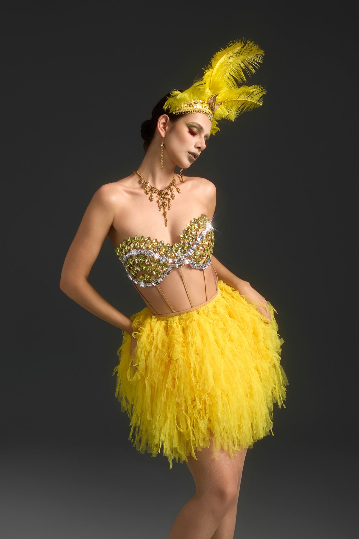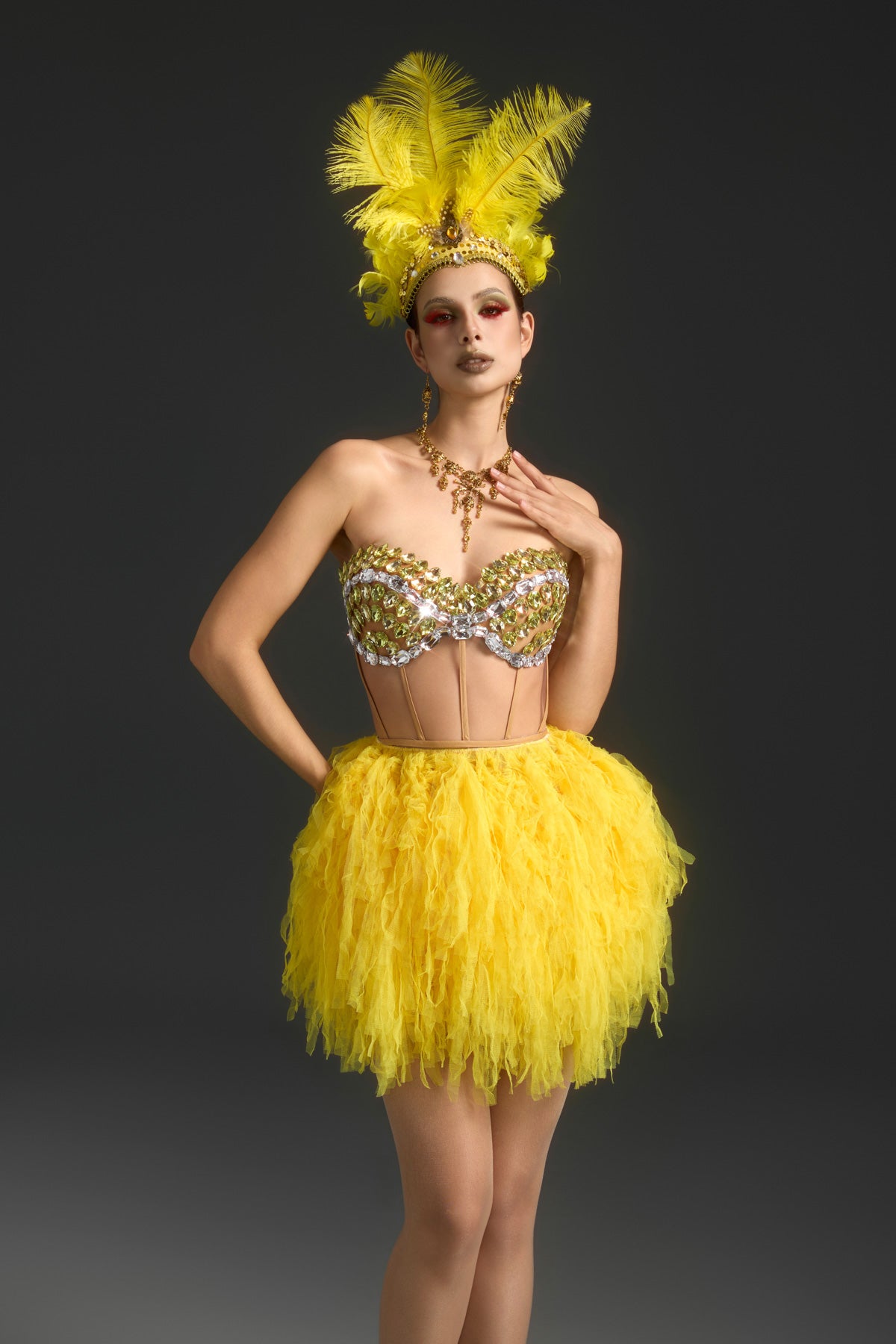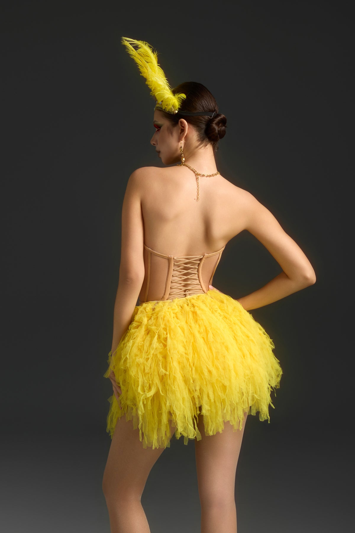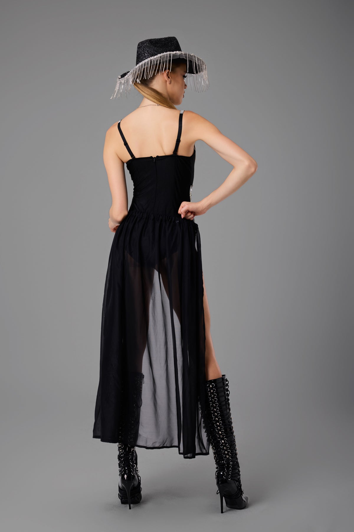 Omera Spaghetti Rhinestone Mesh Mini Dress
