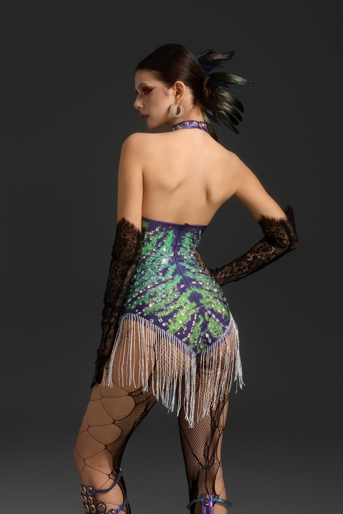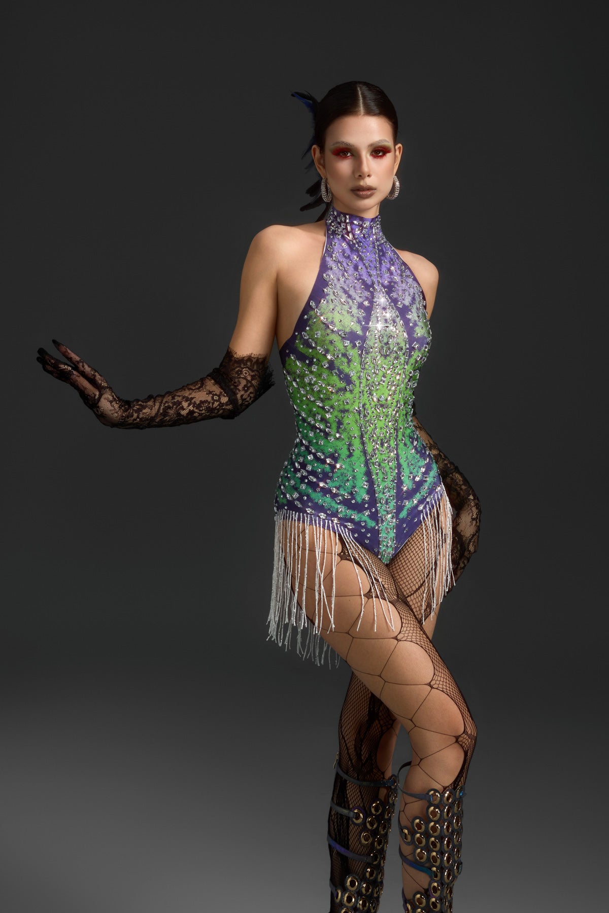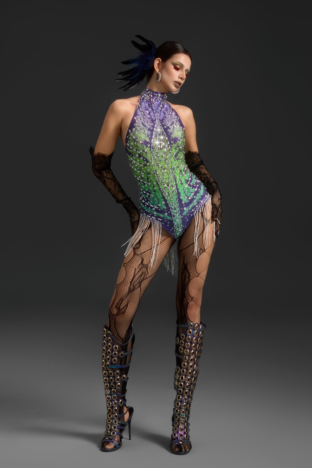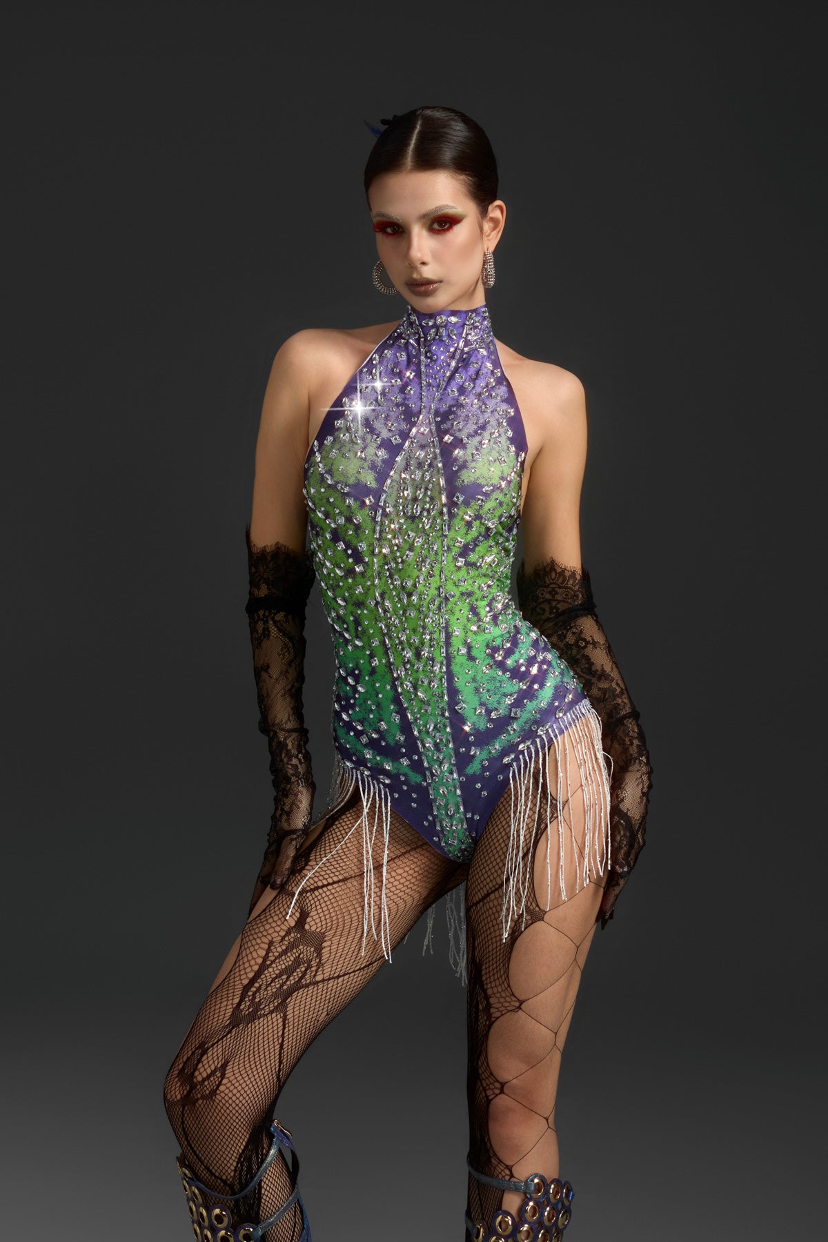 Ottilia Sleeveless Printed Fringe Rhinestone Bodysuit